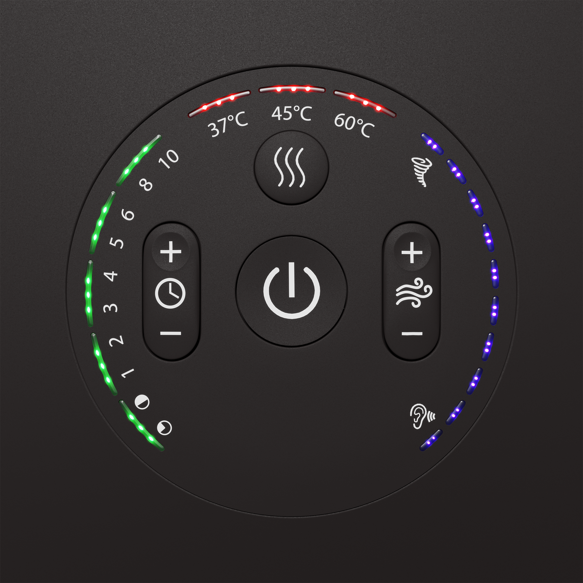Justerbar varme (romtemperatur, 37°, 45°, 60° grader) med varmeinnstillinger for lær og sensitive materialer.
